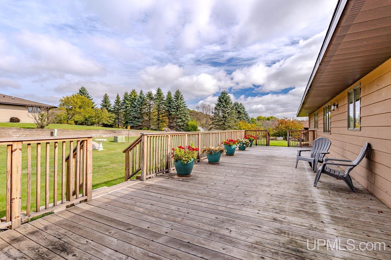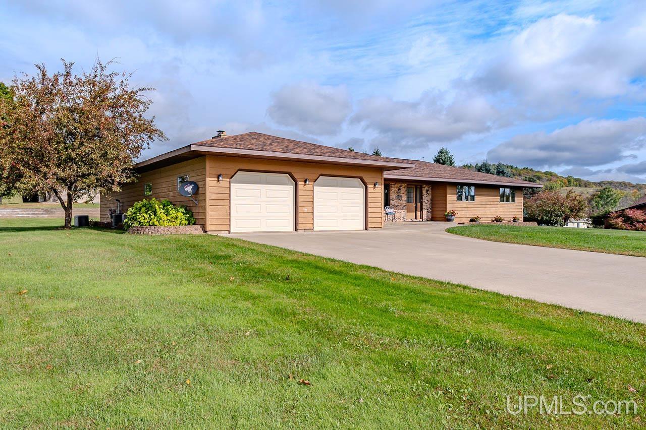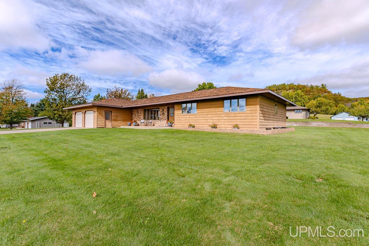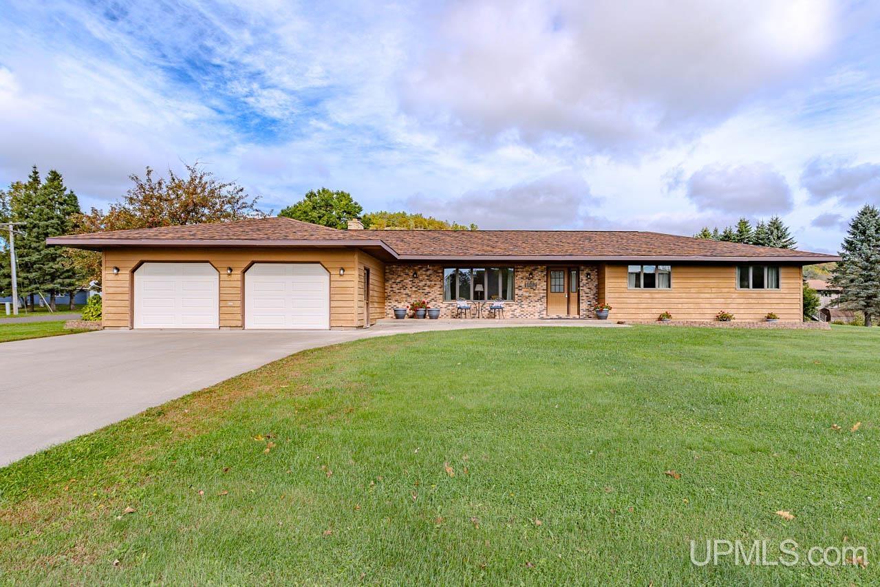 This beautifully maintained, extremely well-built ranch offers space, comfort, and craftsmanship in every detail. The curb appeal is undeniable, from the manicured 0.64-acre corner lot to the inviting back deck perfect for morning coffee with a view of the bluff. Inside, you’ll find over 3,200 square feet of total finished living space featuring rich oak cabinetry, quality millwork, and a bright, open layout. The kitchen is the heart of the home with abundant cabinetry, tile backsplash, and built-in appliances including range, oven, microwave, dishwasher, and refrigerator. A main-level laundry with sink and storage leads to the attached 2-car garage complete with a ramp for accessibility and a whole-home generator for peace of mind. Spacious living and family rooms offer versatile gathering spaces, highlighted by a cozy wood-burning fireplace and large windows that fill the home with natural light. A partially finished lower level adds extra recreation or hobby space. Three comfortable bedrooms and three full baths provide plenty of room to unwind. The primary suite offers generous closet space and a clean, neutral palette ready for your personal touch. Updates include a new roof installed October 2024, and a well-maintained heating system with both boiler and forced-air components for year-round comfort. Enjoy the convenience of city water and sewer, central A/C, and a quiet neighborhood just minutes from downtown Bessemer. Solid, spacious, and move-in ready, this home captures the best of Upper Peninsula living. Listing agent is related to the sellers.