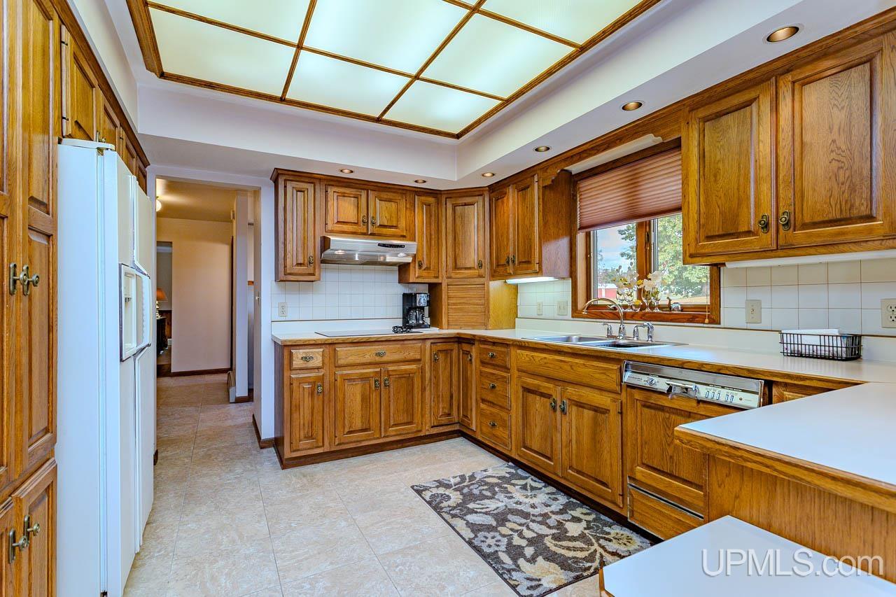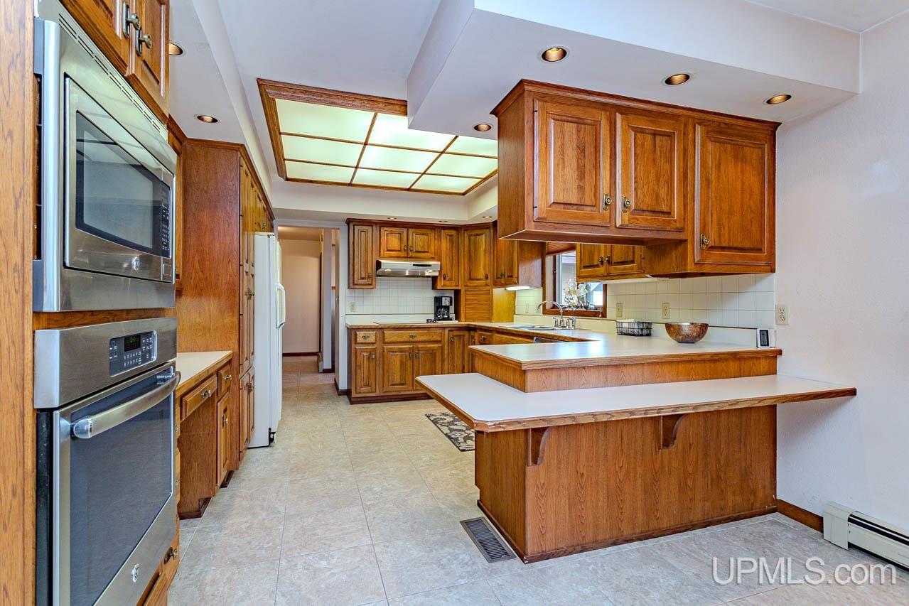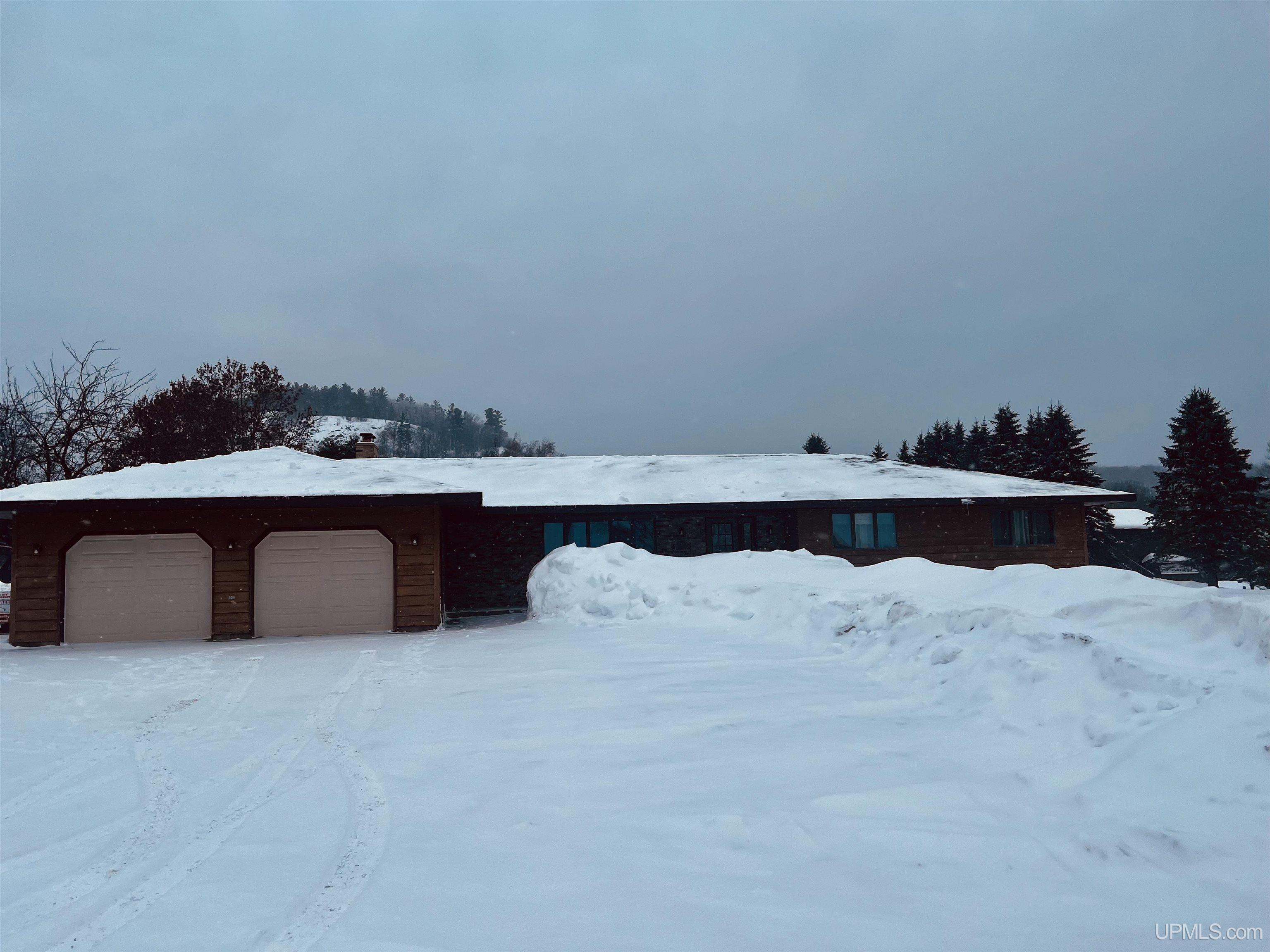 This beautifully maintained, extremely well-built ranch offers space, comfort, and craftsmanship in every detail. The curb appeal is undeniable, from the manicured 0.64-acre corner lot to the inviting back deck perfect for morning coffee with a view of the bluff. Inside, you’ll find over 3,200 square feet of total finished living space featuring rich oak cabinetry, quality millwork, and a bright, open layout. The kitchen is the heart of the home with abundant cabinetry, tile backsplash, and built-in appliances including range, oven, microwave, dishwasher, and refrigerator. A main-level laundry with sink and storage leads to the attached 2-car garage complete with a ramp for accessibility and a whole-home generator for peace of mind. Spacious living and family rooms offer versatile gathering spaces, highlighted by a cozy wood-burning fireplace and large windows that fill the home with natural light. A partially finished lower level adds extra recreation or hobby space. Three comfortable bedrooms and three full baths provide plenty of room to unwind. The primary suite offers generous closet space and a clean, neutral palette ready for your personal touch. Updates include a new roof installed October 2024, and a well-maintained heating system with both boiler and forced-air components for year-round comfort. Enjoy the convenience of city water and sewer, central A/C, and a quiet neighborhood just minutes from downtown Bessemer. Solid, spacious, and move-in ready, this home captures the best of Upper Peninsula living. Listing agent is related to the sellers.