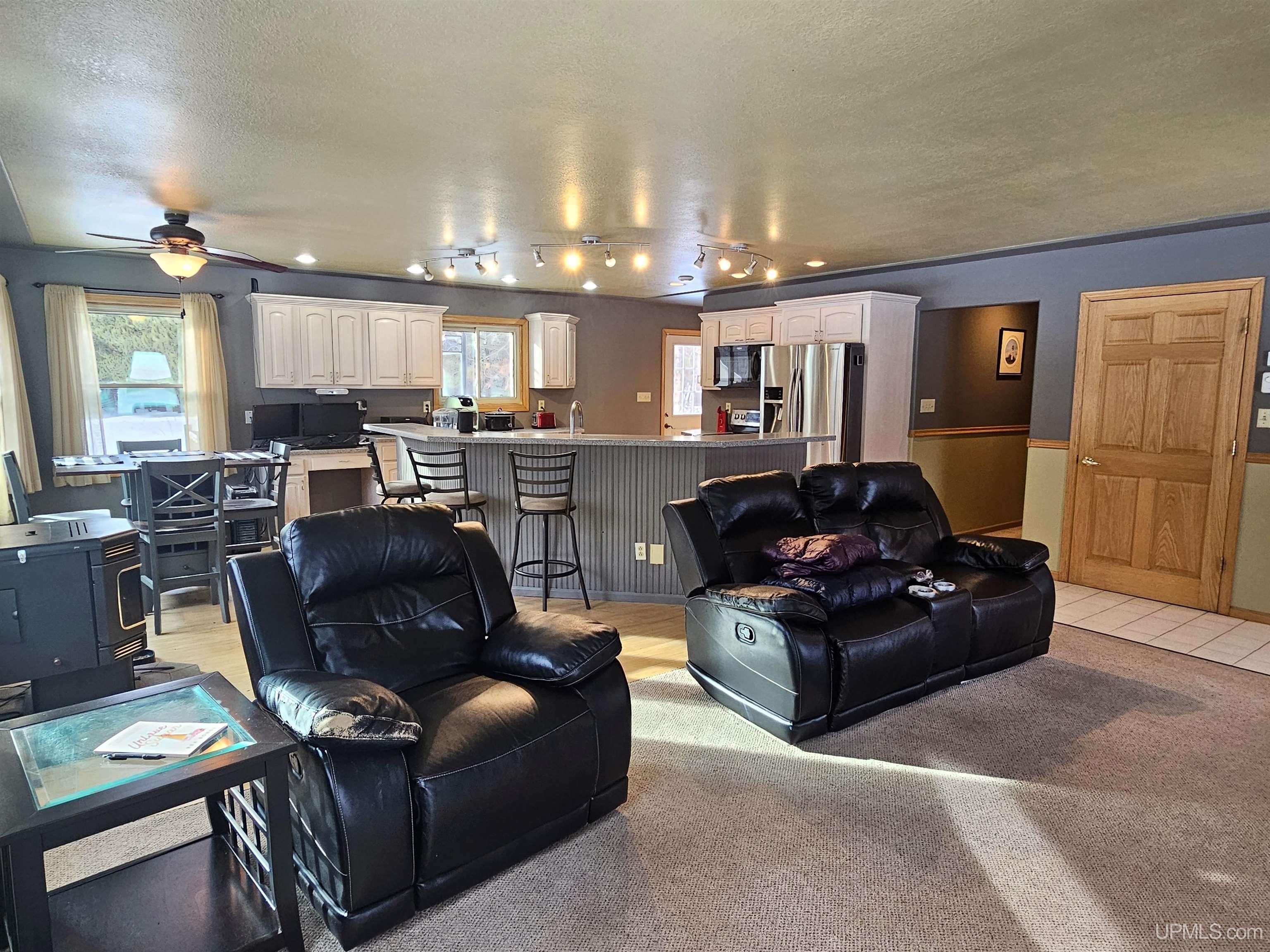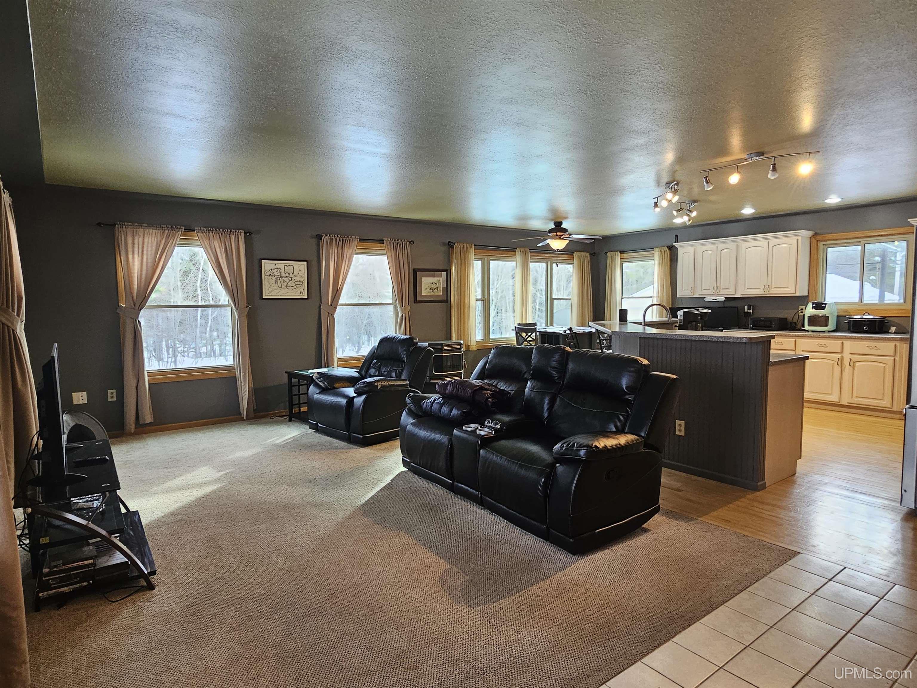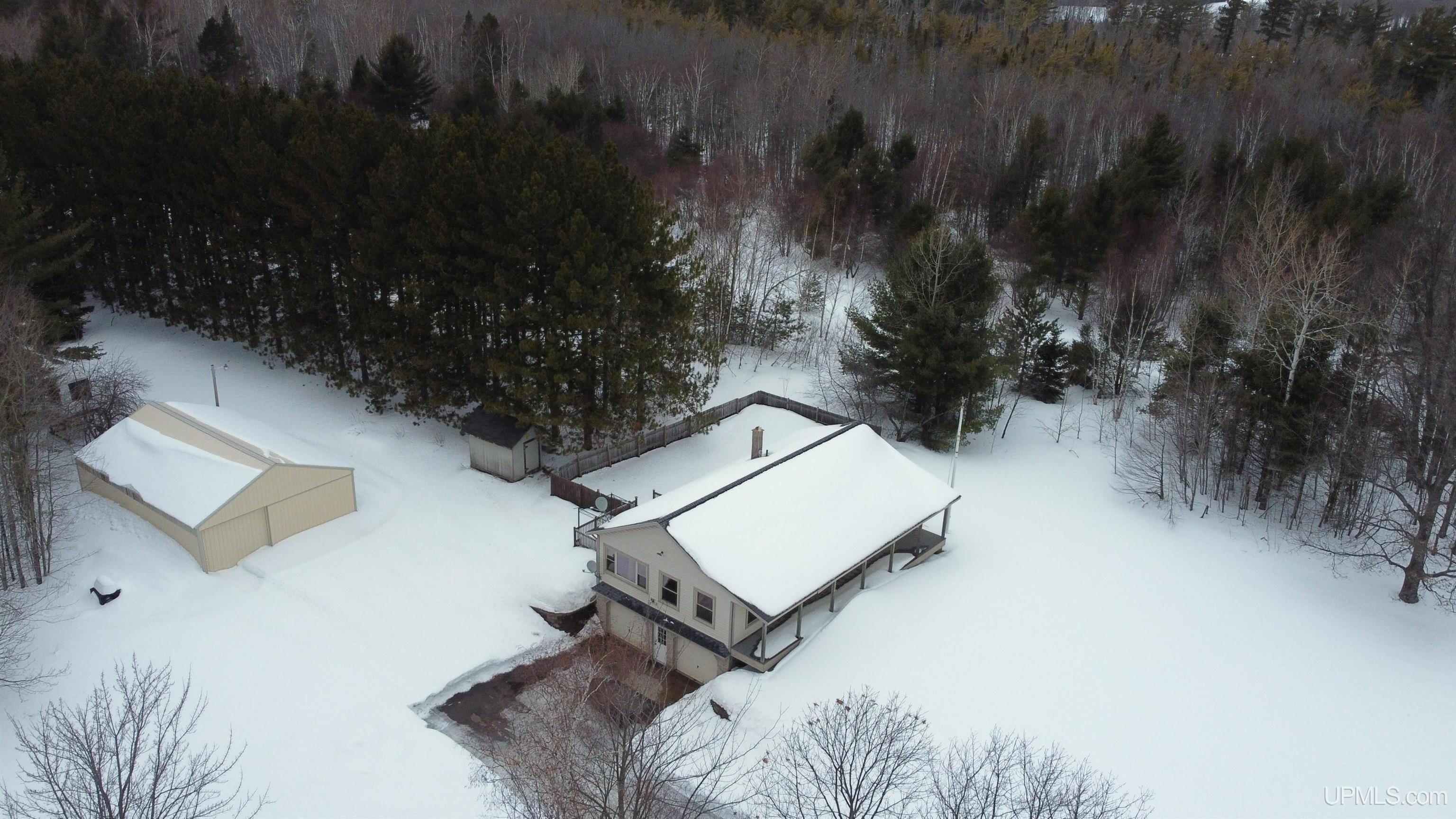 This well-maintained 3-bedroom, 3-bathroom home sits on 5 secluded acres, sits just down the road from the E.B. Holman School and roughly 15 minutes from Houghton. Boasting a functional layout, this home also offers modern amenities like fiberoptic internet and a central vacuum system. The main floor features an open layout to the living room, kitchen and dining area while the many windows provide an abundance of natural light. The spacious kitchen with custom maple cabinets, corian countertops and large island is perfect for entertaining and daily living. This level includes three bedrooms and two full baths, including the primary bedroom with a private ensuite. Enjoy the generous closet space throughout the home for ample storage. The lower level features a small living area, an additional bathroom, and a workout room equipped with a hot tub. The two-car garage accessible from the lower level provides convenient storage and parking. Exterior highlights include a paved driveway, a large pole barn with a wood stove, and an additional storage shed. Relax outdoors on the covered front porch or the back deck while enjoying this peaceful country setting. NOTICE: Information is believed accurate but not guaranteed. Buyers must inspect & verify all property details. Buyers accept all risks of inaccuracies, including but not limited to, acreage, lot size/location, square footage, & utility availability/costs. Real estate taxes will be reassessed & may change significantly after sale; do not assume your tax bills will match the seller’s. Taxes are not zero. GIS, apps and plat book pages/maps are not surveys. Audio/video recording may occur on the property; entry implies consent to recording. Buyer pre-approval and/or proof of funds documentation to be provided upon request. OFFERS: Please allow 72 hours for a response. Seller may set or change offer deadlines at any time with or without notice.