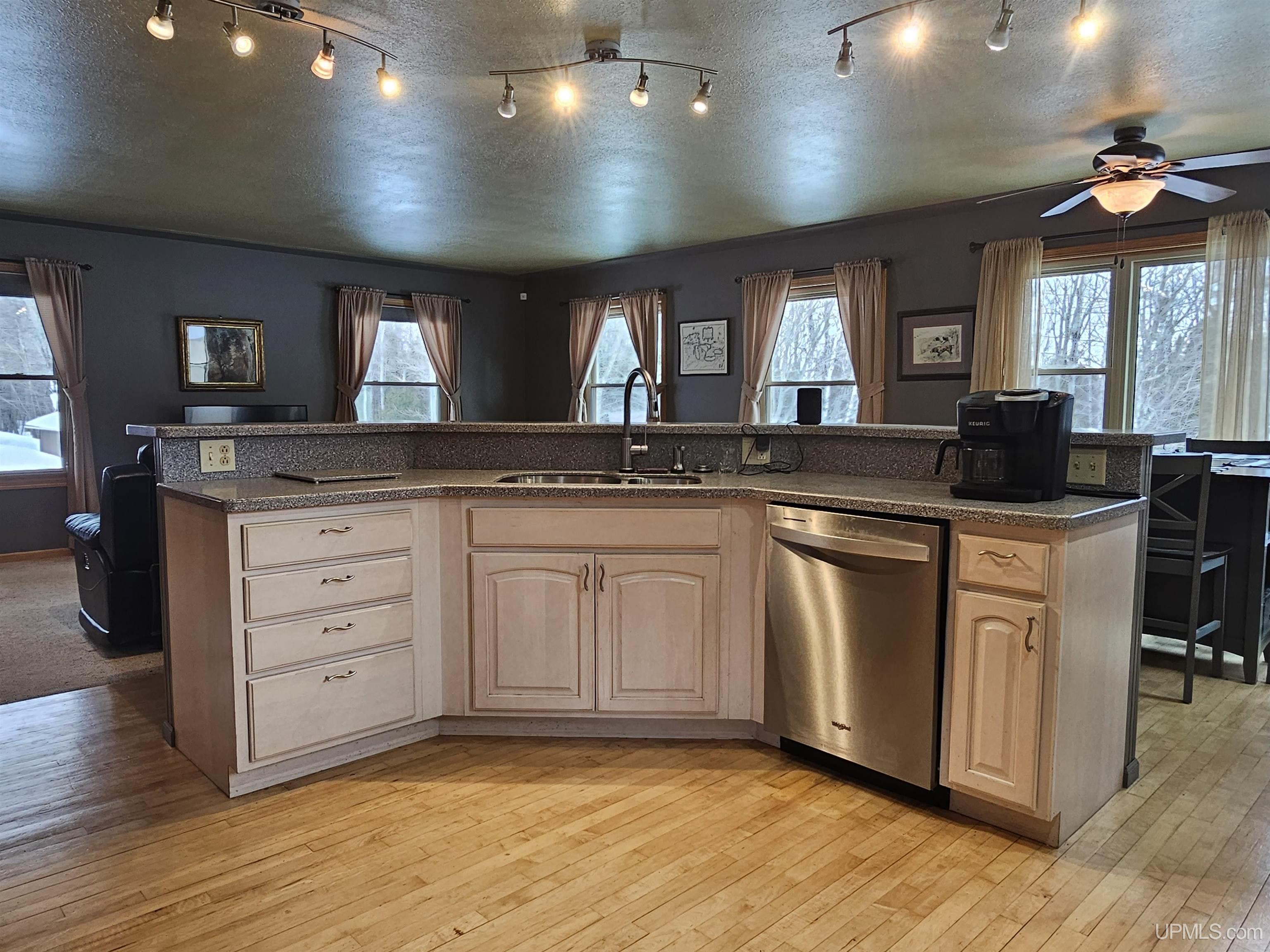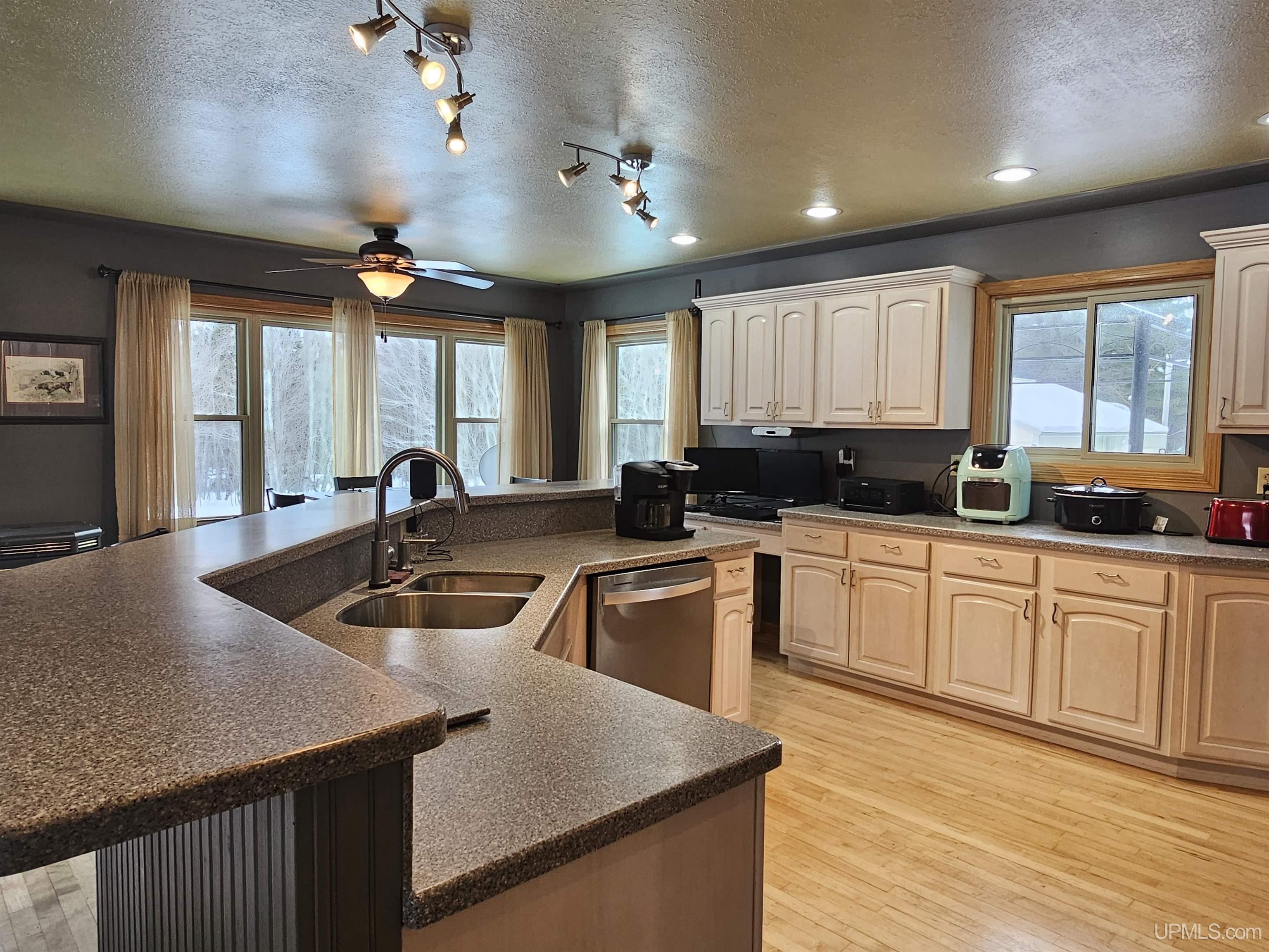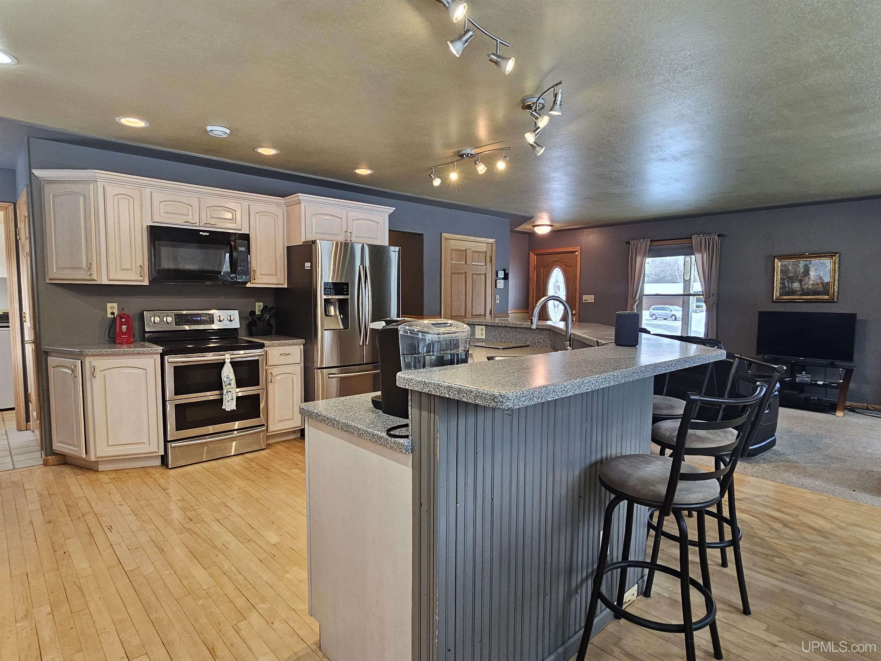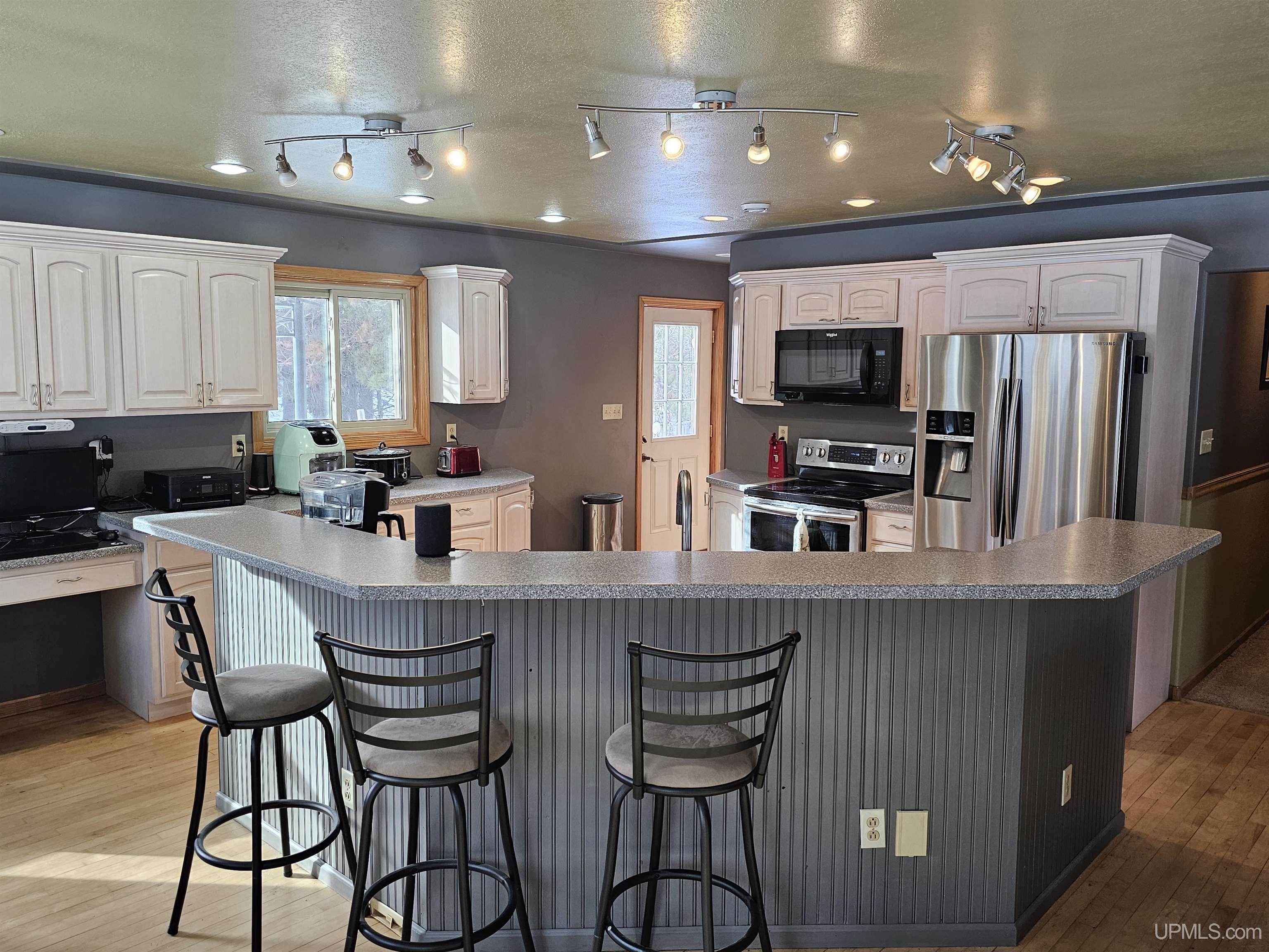 This well-maintained 3-bedroom, 3-bathroom home sits on 5 secluded acres, sits just down the road from the E.B. Holman School and roughly 15 minutes from Houghton. Boasting a functional layout, this home also offers modern amenities like fiberoptic internet and a central vacuum system. The main floor features an open layout to the living room, kitchen and dining area while the many windows provide an abundance of natural light. The spacious kitchen with custom maple cabinets, corian countertops and large island is perfect for entertaining and daily living. This level includes three bedrooms and two full baths, including the primary bedroom with a private ensuite. Enjoy the generous closet space throughout the home for ample storage. The lower level features a small living area, an additional bathroom, and a workout room equipped with a hot tub. The two-car garage accessible from the lower level provides convenient storage and parking. Exterior highlights include a paved driveway, a large pole barn with a wood stove, and an additional storage shed. Relax outdoors on the covered front porch or the back deck while enjoying this peaceful country setting. NOTICE: Information is believed accurate but not guaranteed. Buyers must inspect & verify all property details. Buyers accept all risks of inaccuracies, including but not limited to, acreage, lot size/location, square footage, & utility availability/costs. Real estate taxes will be reassessed & may change significantly after sale; do not assume your tax bills will match the seller’s. Taxes are not zero. GIS, apps and plat book pages/maps are not surveys. Audio/video recording may occur on the property; entry implies consent to recording. Buyer pre-approval and/or proof of funds documentation to be provided upon request. OFFERS: Please allow 72 hours for a response. Seller may set or change offer deadlines at any time with or without notice.